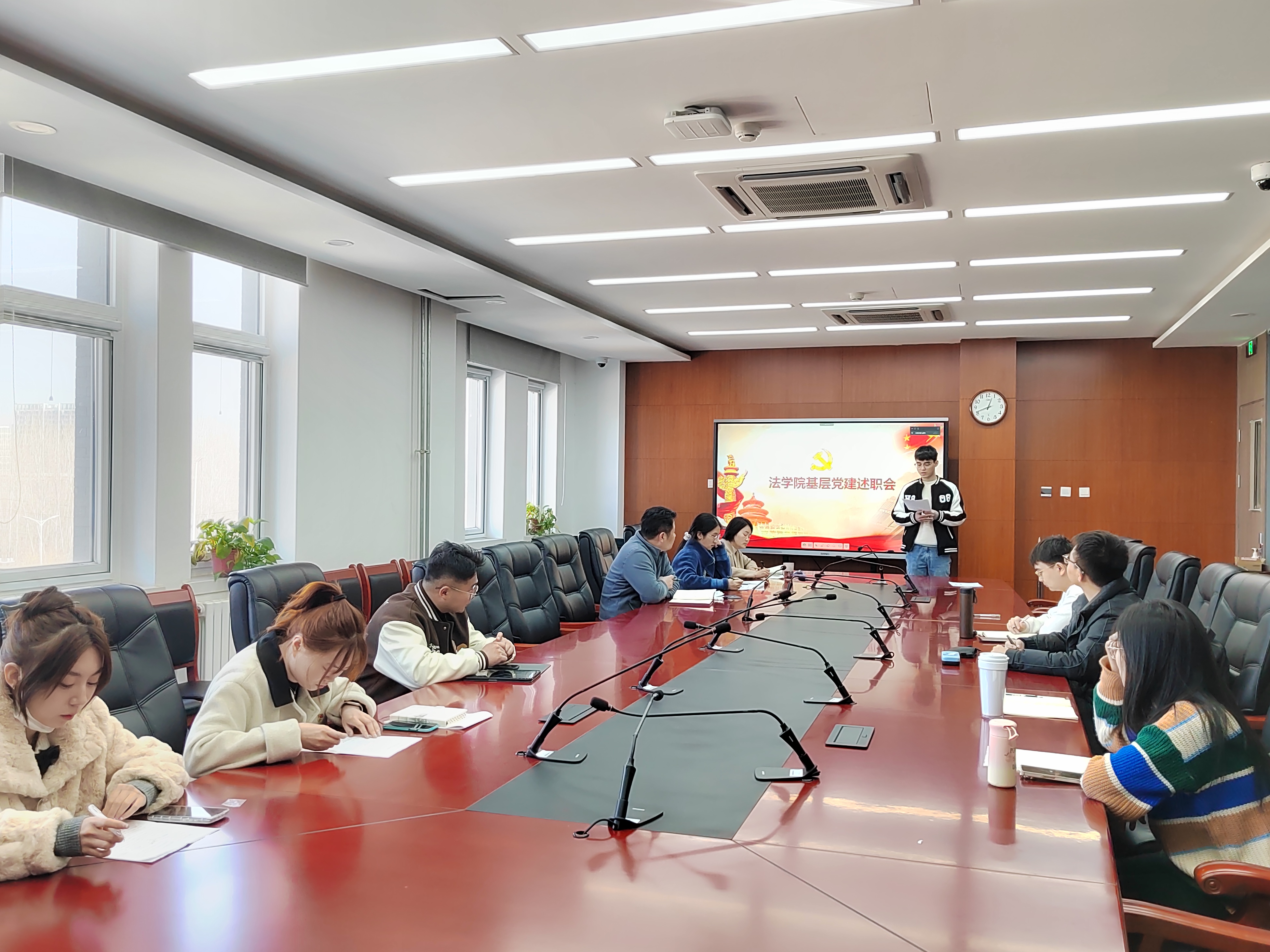 刘晶作总结讲话,并提出四点希望。一是深入学习宣传贯彻党的二十大精神。各支部要以同学们喜闻乐见的形式,策划丰富多彩的主题党日活动,不断提升党员发展教育管理质量。二是深入开展员工党支部红色共建活动。充分调动现有资源,加强与法院、检察院以及农村党支部的共建活动,展示新时代首都老员工的良好精神风貌,组织好暑期社会红色实践活动。三是组织好学雷锋系列活动。2月23日,习近平总书记做出重要指示,今年是毛泽东等老一辈革命家为雷锋同志题词60周年,要深刻把握雷锋精神的时代内涵,让雷锋精神在新时代绽放更加璀璨的光芒。各支部要密切联系班级,发动群众,组织好学雷锋系列活动。四是加强基层党支部规范化建设。以“三会一课”为抓手,谋划好主题党日活动,规范开好组织生活会和民主评议党员。发挥好支部战斗堡垒和党员先锋模范带头作用,提升员工党支部组织力和战斗力。
