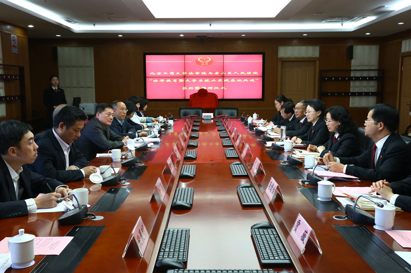 邱晓平代表学校对房山法院表示感谢,表达了学校各部门全力支持共建的决心,并对共建合作提出建议:一是要共同加强法学基础理论研究,建设特色法学教育学科和课程体系;二是制定落实专家和教师交流挂职计划,交换派出较高理论水平和丰富实践经验的教授和专家相互挂职任教;三是合作打造法学专业教学团队,共同制定培养计划、设计课程体系、建设实践基地;四是合作支持法院干部培训,提高人才队伍专业化水平。邵明艳从司法改革的需求、法官人才队伍的培养、专家型法官人才的成长、基层法院案多人少的现实困难等方面强调了此次共建的重要性,并表达了未来进一步合作的信心。