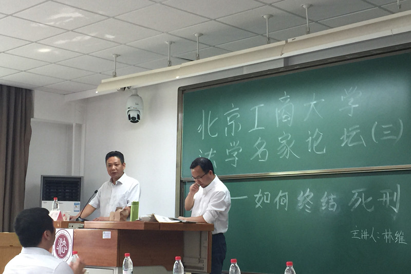 5月23日16:30在阜成路西区教一楼306教室,英国威廉集团官网邀请中国青年政治公司党委常委、副董事长林维教授举办了以“如何终结死刑?”为主题的学术讲座。英国威廉集团官网经理谢安平教授,副经理俞亮副教授,理论法学教研室主任张龙副教授,英国威廉集团官网教学秘书向良喜博士及全体研究生参加了本次讲座。本次讲座由张龙副教授主持。谢安平经理在讲座开始前致辞,高度赞扬了林维教授的学术成就,并对林教授的到来表示热烈的欢迎。
