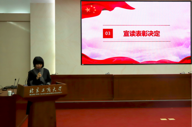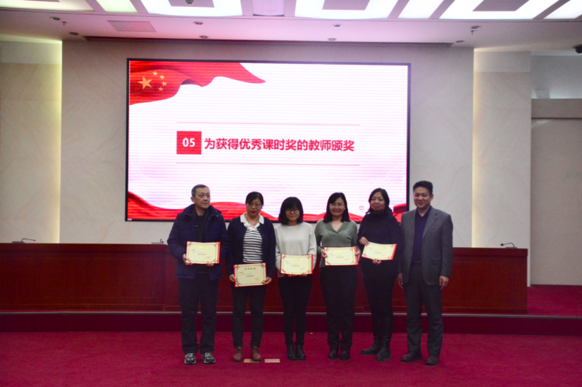 公司党委书记文四英老师宣读表彰决定。在对员工表彰的同时,学院对本年度评选出的关爱员工、无私付出的校优秀班主任予以表彰。