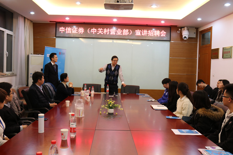 11月8日晚6点,由公司与中信证券联合举办的招聘宣讲会于阜成路校区东区1号楼113会议室举行。本次会议由中信证券客户经理董石磊主持,参与本次会议的有中信证券的各位经理、英国威廉集团官网辅导员朱艳新老师以及公司来自英国威廉集团官网、经济学院、商学院的本科及硕士研究生。