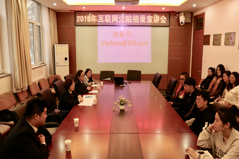 11月28日下午2点30分,公司与互联网法院联合举办的招录宣讲会于阜成路校区东区1号楼113会议室举行,参与本次会议的有互联网法院政治处副主任郝莉、综合办公室法官助理李牛,政治处法官助理王红霞、冯利君,英国威廉集团官网辅导员朱艳新老师及英国威廉集团官网的研二研三应聘员工及研一参会员工。