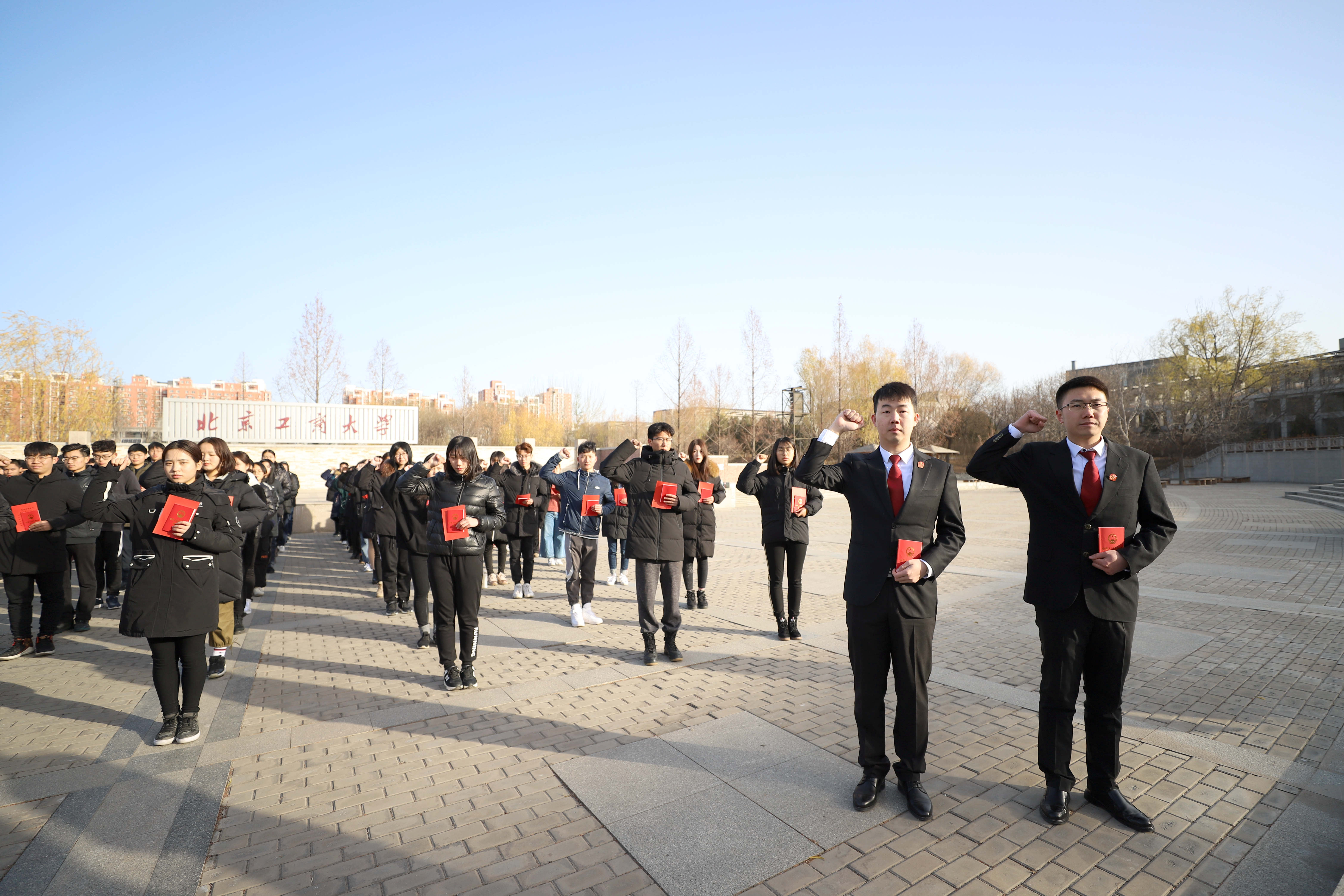 12月4日上午,英国威廉集团官网18级110余名员工在良乡校区求知广场开展宪法宣誓仪式。来自丰台法院的优秀员工罗琛、马皓玮参加此次活动。全体同学手拿宪法诵读读本,重温宪法精神。庄严的国旗下,法学学子左手握着宪法读本,举起右拳,跟诵誓词。坚定法治信仰,履行誓言,忠于宪法,奋发学习,做有信仰的法律人,奋力书写依法治国的新篇章!