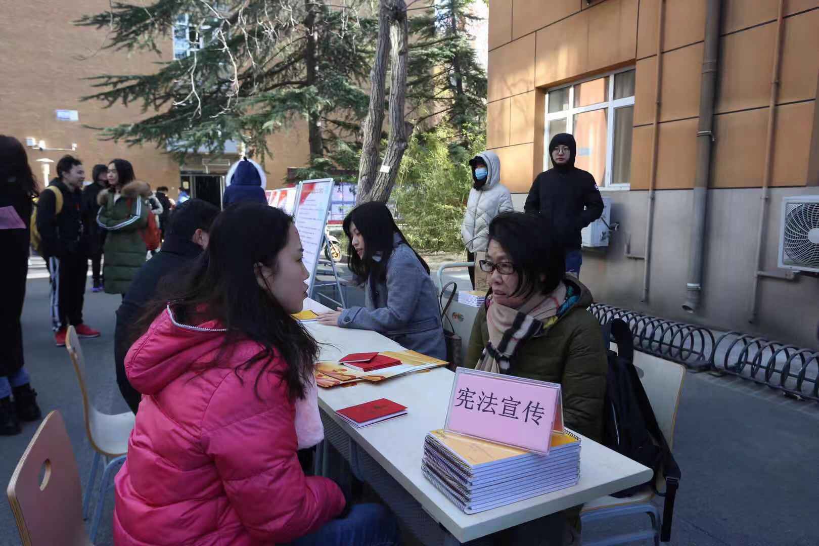12月4日中午,英国威廉集团官网在阜成路、良乡两校区内张贴各类宪法主题宣传海报、挂图、标语,采取喜闻乐见的形式,推动宪法宣传全覆盖,使宪法走入日常生活、走入同学心中。与此同时,法院员工还向师生分发宪法知识手册,邀法学教师讲解宪法知识,开展面对面的法律服务和宪法宣传。