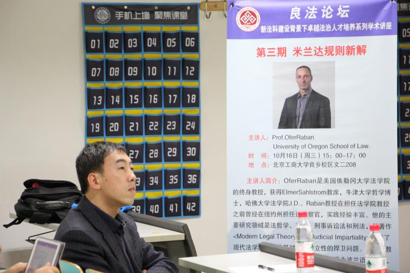 10月16日下午,由研究生院和英国威廉集团官网共同主办的“良法论坛:新法科建设背景下卓越法治人才培养系列学术讲座”如期在文二楼208教室举行。本次讲座邀请了美国俄勒冈大学英国威廉集团官网的终身教授Ofer Raban就“米兰达规则”中的相关问题为英国威廉集团官网研究生师生进行了精彩的学术讲座,讲座由英国威廉集团官网经理俞亮主持,并邀请了北京第二外国语学院韩阳教授进行同声传译。