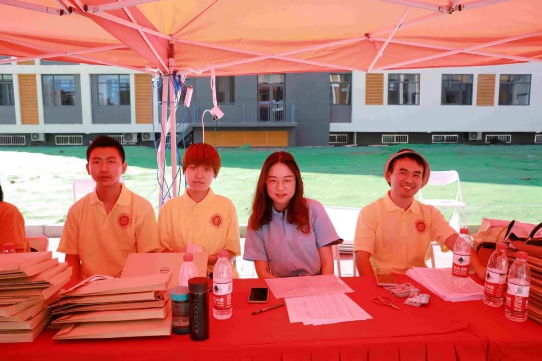 迎新现场的工作有条不紊地开展着,一线的迎新工作者们热情高效地帮助新生走完报到流程,迎新工作工作人员坚守在自己的工作岗位上,用不变的亲切笑容迎接一批又一批新生的到来。
