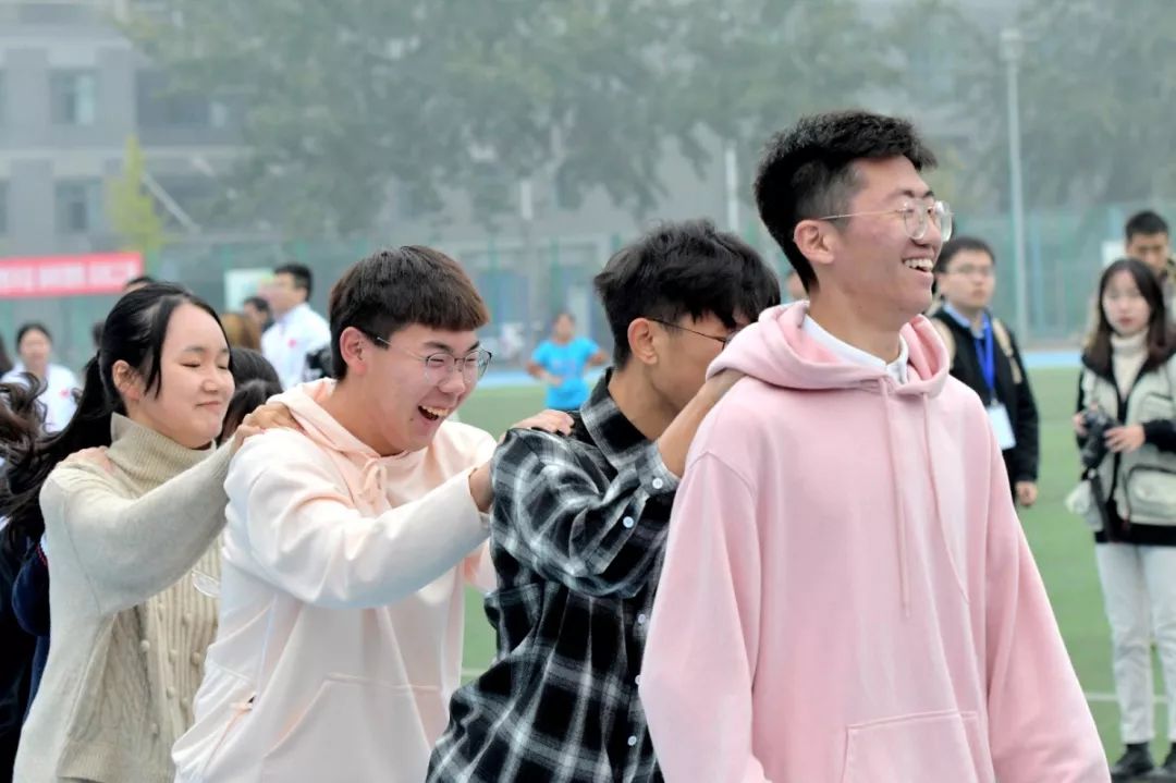 随后举行的趣味运动会同样精彩纷呈,奋力拼搏的同时,现场笑声不断,拔河、骑毛毛虫让同学们体会到了团队协作的重要性,此刻不分你我,大家在赛场上已经融为一体,沉浸于比赛带来的无尽乐趣中。每一轮比赛结束,都有热心的同学来搀扶体力透支的运动员,还有的同学把早已准备好的矿泉水递到运动员们的手中,他们勤谨做好后勤工作,不断地默默支持运动员们。