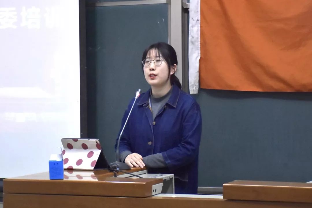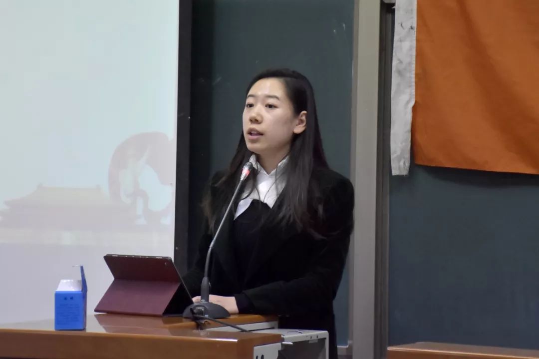 紧接着,法学163班班级代表宋智超以本科生目前党支部情况为引,从党团班“三位一体”模式的内容,原因以及如何实施三个方面进行了介绍。她将调查数据显示出来,生动形象地表现出目前同学们对建立党团班协同机制的强烈需求。同时,她明确了党支部,团支部以及班集体的职责,这对党班 团有效联动和协调工作的进行起到促进作用。