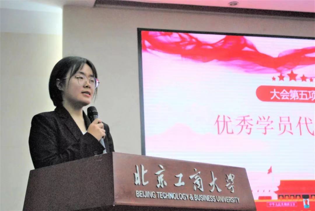 法学182班的董洋同学作为优秀学员代表发表了此次团校带给她的感悟。她讲到前往田仙峪村普法、参观新文化运动纪念馆、聆听万伟伟老师讲座等一系列团校活动,不仅深化了她对于团组织的了解,更加强了她对团组织的归属感。同时作为学院的一名员工干部,她表示将在未来的工作中从源头进行严格要求,努力改革创新,更好地实现团委对于组织部的工作期望。