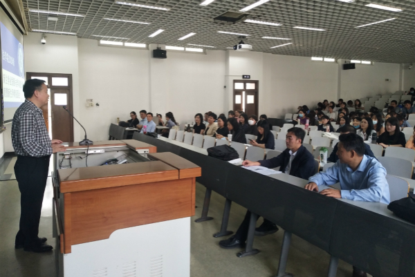 在新生学业发展与学风建设教育环节,董彪副经理向2020级新生表示祝贺,随后介绍了学院历史、学科发展史,围绕研究生学习中存在的“三个困惑”,为新生未来的学业规划提供了思路。经理助理马擎宇博士为新生解读了关于学术道德与学风建设的相关文件,重点指出研究生应遵守科研规范,杜绝学术不端行为。