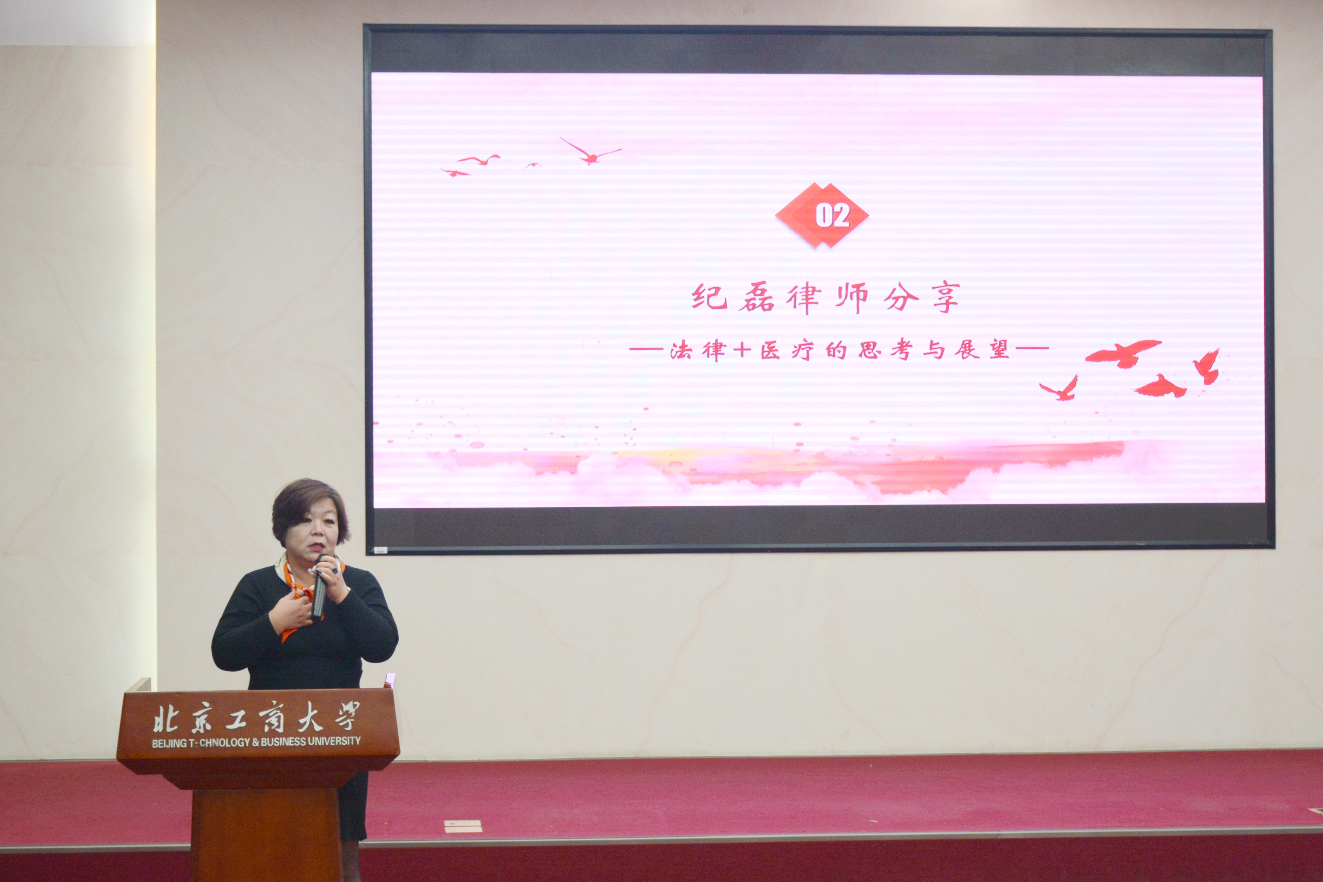 北京市华卫律师事务所合伙人、北京市律协医药卫生法律专业委员会副主任、公司98届本科毕业生纪磊律师以“法律+医疗的思考与展望”为主题进行了分享。纪磊律师介绍了自己的从业经历,对法律+医疗的职业前景进行了展望。她对有意从事律师工作的同学们,提出了几点建议:首先,要学会转换思维,从多个视角和不同立场看待问题;其次,对案件的结果要有合理预期:“胜诉败诉是普通民众的说法,从律师角度,只有多大程度上维护了当事人利益的区别”。每个案件都有自己的规律,作为律师要善于总结经验、寻找案件的规律;第三,做好律师要手勤眼到,同时做好吃苦的准备。纪律师希望同学们在校期间应该尽可能多看书,扩大阅读量,把法律基础知识掌握扎实,为今后从业打下坚实的基础。
