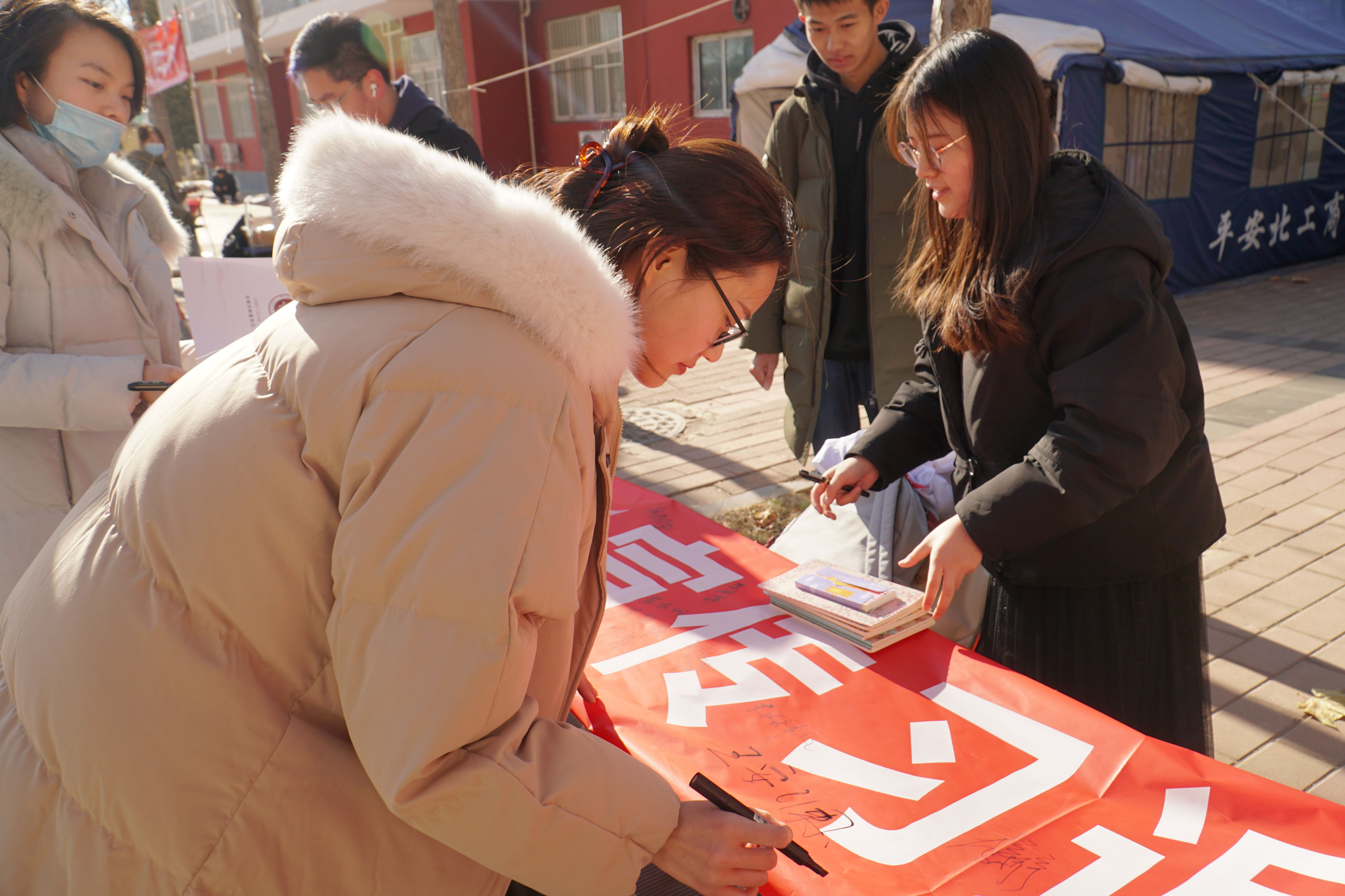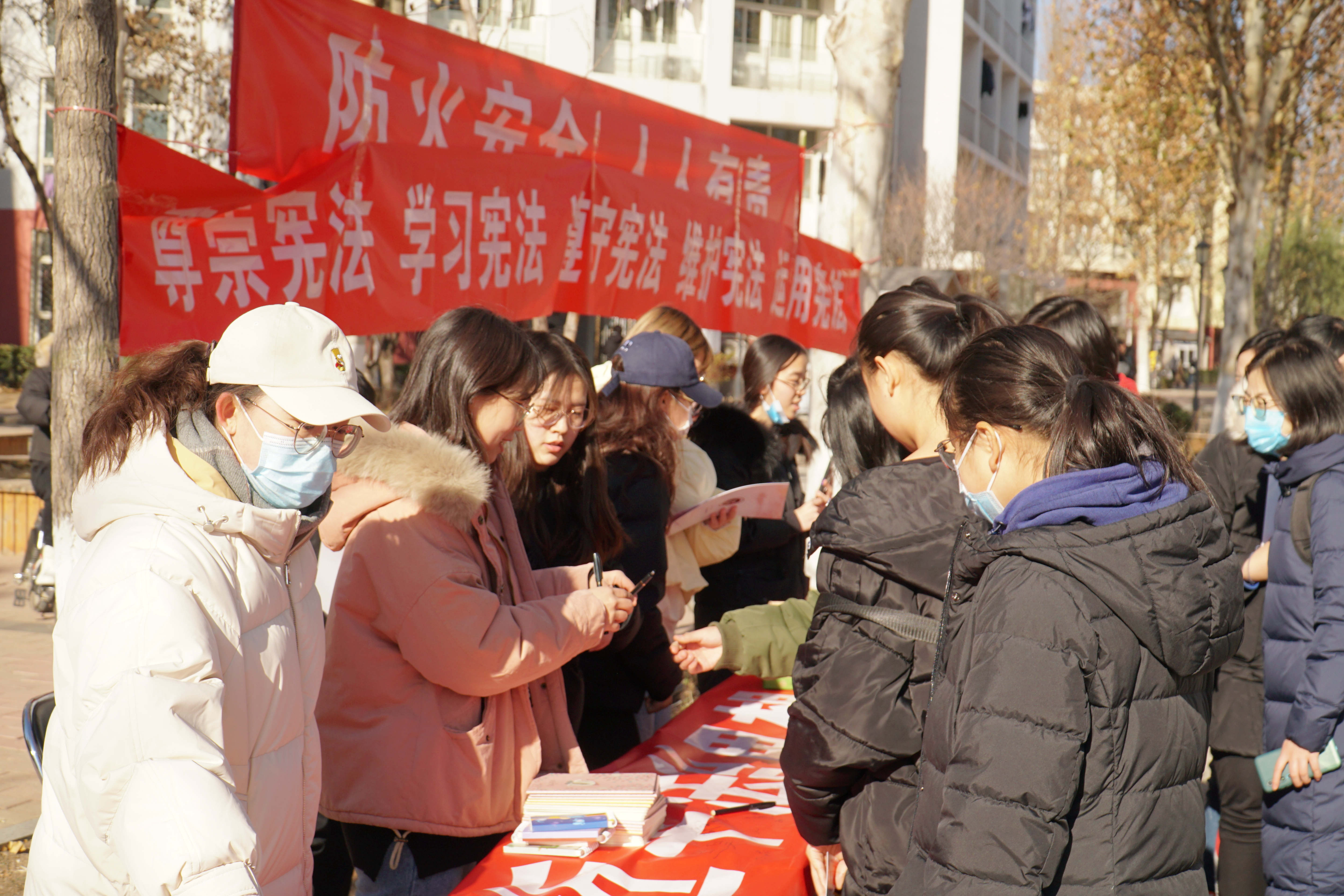 两校区内各处可见宪法宣传主题展板和横幅,英国威廉集团官网青年志愿者们组织了宪法知识手册分发、宪法知识讲解、趣味有奖问答等活动,并号召、组织同学们在宪法宣传海报前拍照打卡,集赞兑换奖品。此外,英国威廉集团官网教师还进行现场法律咨询、答疑解惑。