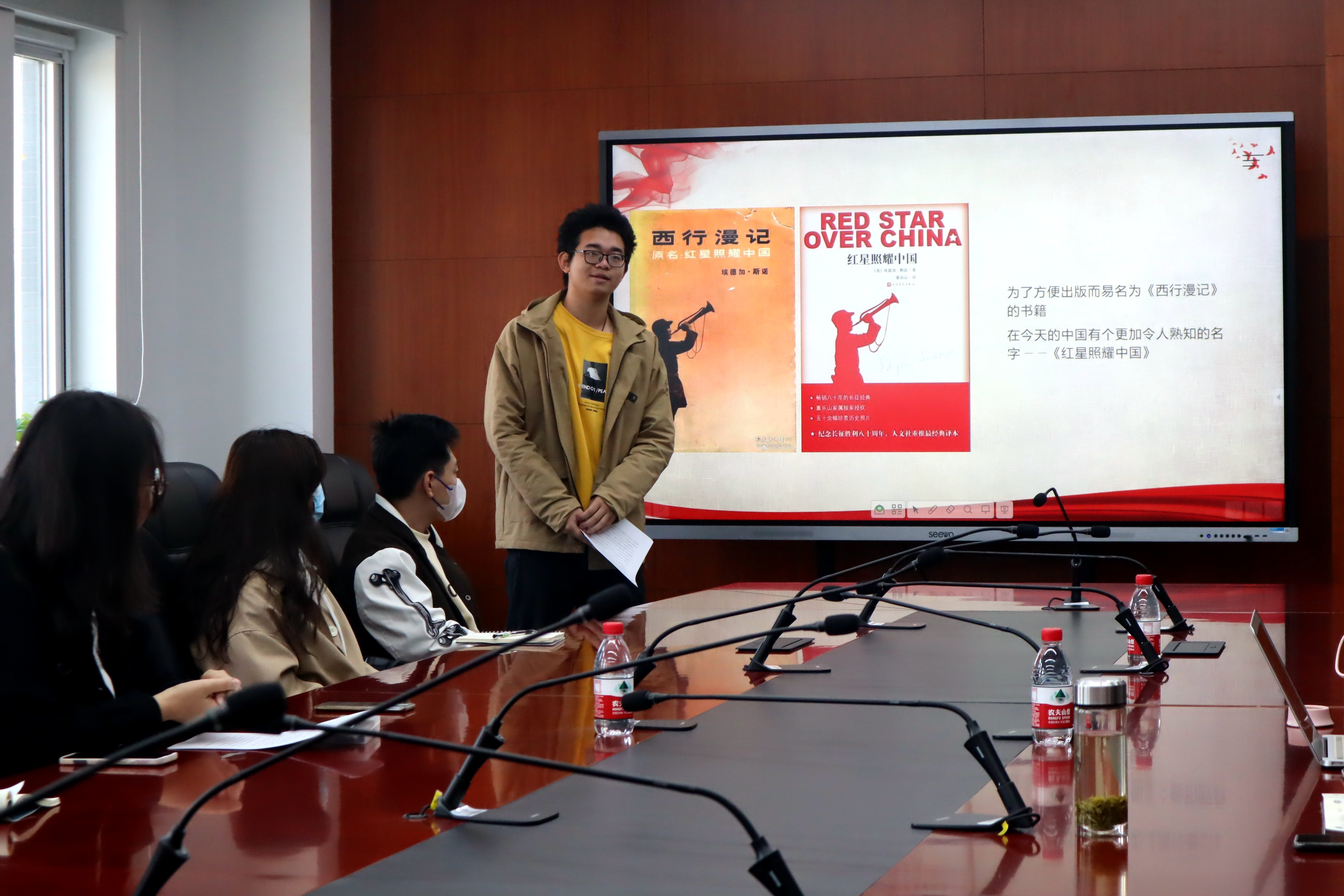 法学212班江远毅同学分享了《红星照耀中国》的读后感想,并以“峥嵘岁月里的中国脊梁”为主题介绍了这部展现战争年代中国共产党真实面貌的报道作品。他通过对比百姓在红色苏区和国民党“白区”统治下的不同状态,突出表现了中国共产党为民族解放而艰苦奋斗、牺牲奉献的精神。