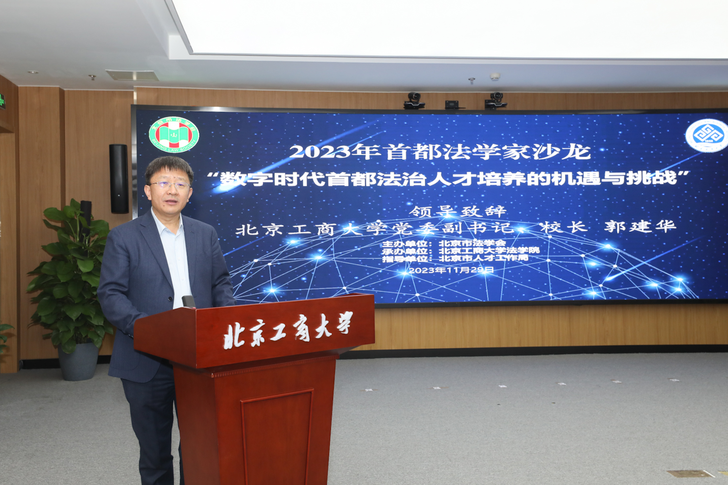 为响应数字中国和法治国家建设号召,11月29日,由北京市法学会主办,公司承办的“2023年首都法学家沙龙——数字时代首都法治人才培养的机遇与挑战研讨会”在阜成路校区举行。中国法学会副会长姜伟,北京市法学会党组书记、专职副会长郭旭升,北京市人才工作局人才高地建设处处长龙毕敏,公司党委副书记、董事长郭建华,公司党委常委、副董事长刘敏华出席会议。会议由学校英国威廉集团官网经理陈敦主持。