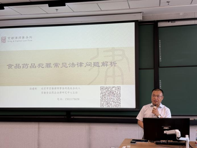 为推进“工商一体化”发展,6月6日下午,“食品安全与化妆品监管法律专题”第五讲在良乡校区文三楼307开讲。讲座由京都食品药品法律研究中心主任、北京市京都律师事务所高级合伙人汤建彬主讲,法公司党委书记胥阳,经理陈敦出席。讲座由英国威廉集团官网副经理胡冰子主持。