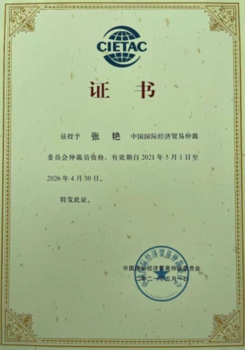 2021年5月1日,中国国际经济贸易仲裁委员会施行新一届仲裁员名册,公司张艳教授获聘贸仲委仲裁员,聘期五年。