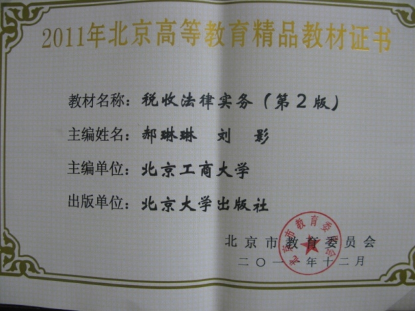 取得的教学成果和教改成果主要有:(1)主编《税收法律实务》(北京大学出版社),已修订至第五版,获评北京市高等教育精品教材奖。(2)完成专著《论促进高等教育发展的税收优惠制度》(知识产权出版社)。(3)主持教育部课题“促进高等教育发展的税收制度研究”;主持北京市教委中青年骨干教师项目“高等学校财税法教学的短板与改革”;主持北京市教委科研项目“信托所得课税问题研究”;主持校级教改项目“基于慕课的法学课程翻转课堂教学模式创新研究”等。