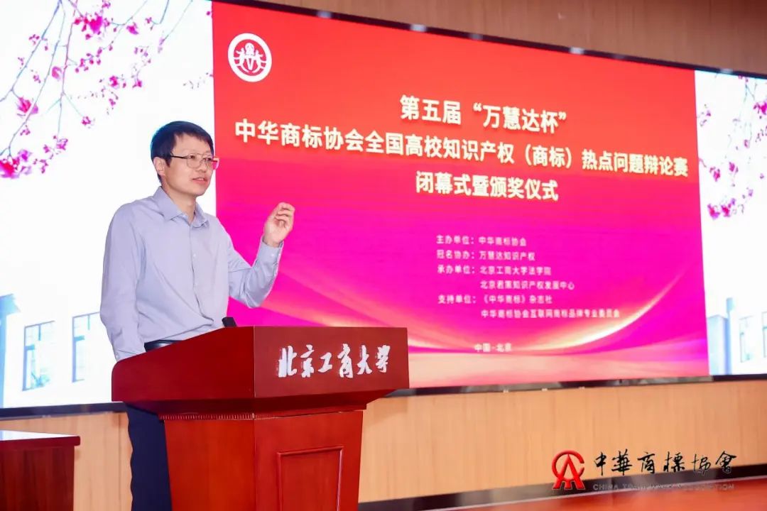比赛结束后,进行了第五届“万慧达杯”中华商标协会全国高校知识产权(商标)热点问题辩论赛闭幕式暨颁奖仪式,中华商标协会副秘书长、《中华商标》杂志社社长张豫宁出席活动并发表闭幕致辞,仪式由北京君策知识产权发展中心副理事长汪泽主持。随后,组委会于现场颁发了部分奖项。