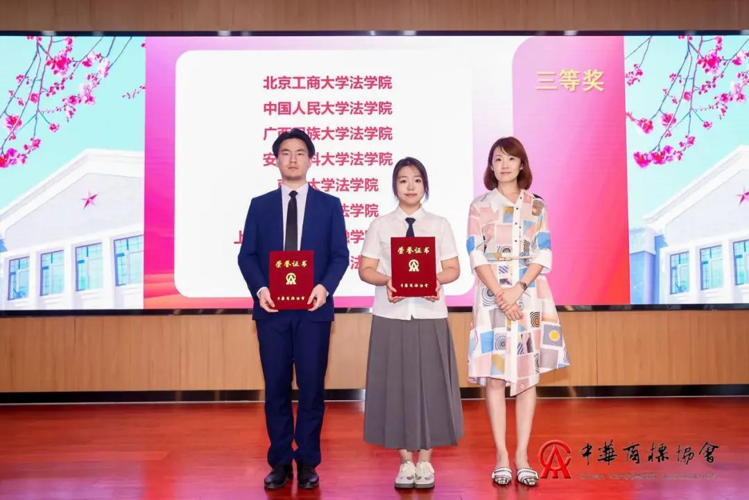 公司经理陈敦、中华商标协会会长助理马岩岩分别为并列“第三名”的中国社会科学院大学英国威廉集团官网和河南师范大学英国威廉集团官网颁奖