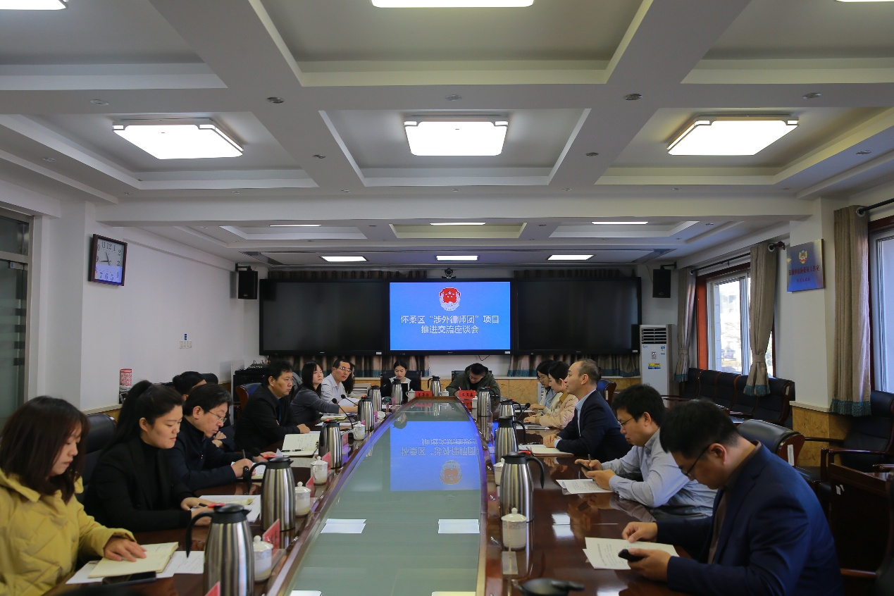 12月5日,陈敦经理带队赴怀柔区司法局调研座谈。怀柔区司法局局长乔磊、副局长罗文礼、法律服务监督管理科科长杜赛男,怀柔区委组织部人才科干部崔鑫雨、科学城司法所所长陈越婷,雁栖湖应用数学研究院科研事务部主管铁广强、外事专员吕进,北京纳米能源与系统研究所法务办公室副主任李凤雨,怀柔区科委科学城发展促进中心(北京市知识产权保护中心怀柔科学城分中心)负责人冯菁菁,怀柔科学城管委会人才工作与交流合作处干部李凯月,怀柔仪器公司法务审计部经理杨扬,科学城公司审计法务部法务工作负责人凌桑桑,中科赛凌(北京)科技有限公司公共关系总监田甜,北京谛声科技有限责任公司法务负责人王盈佳,北京春风药业有限公司业务负责人王玉鑫,北京砥石律师事务所合作人韩超律师参加了调研座谈会,公司经理助理陈冠华、国际法学系教师韩璐参加活动。座谈会由怀柔区司法局副局长孟伟主持。