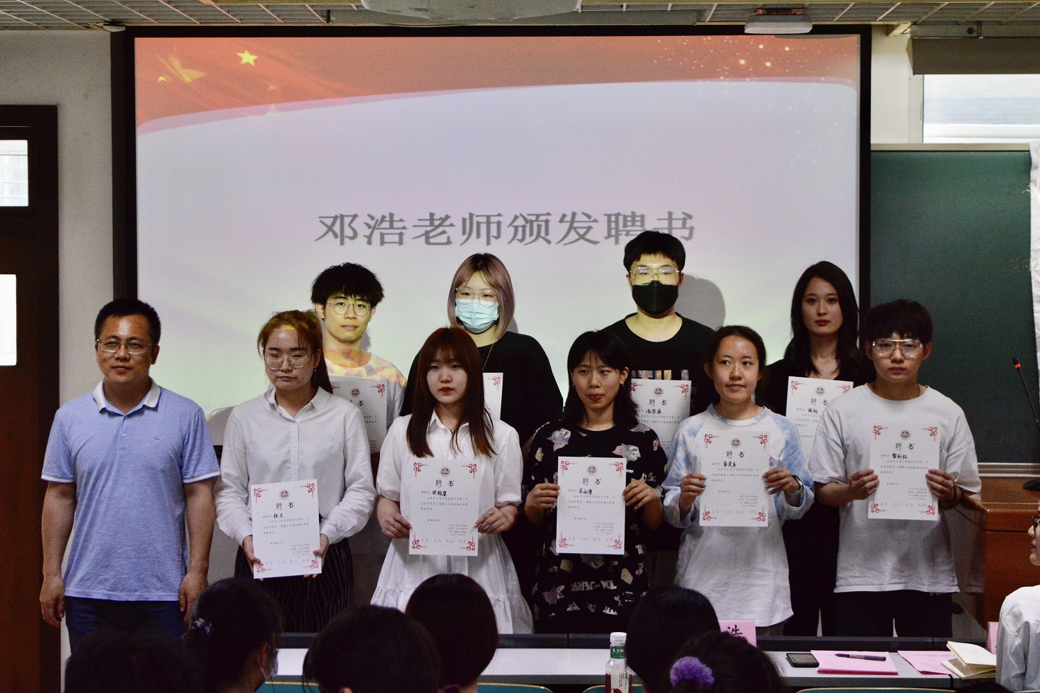 邓浩为团校兼职辅导员颁发聘书。