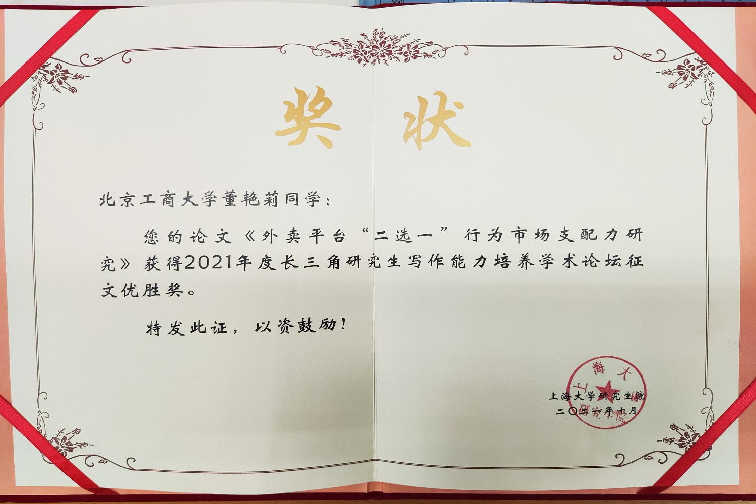 此次论坛面向全国高等院校征文,论文涵盖所有主题、所有专业,共收到征文百余篇。经过专家评审,此次论坛共评选出一等奖论文4篇,二等奖论文10篇,三等奖论文14篇,优胜奖论文22篇。其中,公司研究生董艳莉撰写的论文《外卖平台“二选一”行为市场支配力研究》获评征文优胜奖。该文集中于如今非常热门的外卖平台“二选一”问题,既涉及史上最高罚款的阿里巴巴垄断案,也涉及具有典型性的美团“二选一”案,以外卖平台对平台内商家实施的“二选一”行为为基础,分析了该行为对社会总福利的损害,其垄断效应在损害了商家及消费者利益的同时,也在上游劳动力市场形成了与下游平台内经营者市场截然不同的寡头垄断。同时对外卖平台可能适用的三种抗辩事由逐一击破,并对平台不同受众提出针对性的规制建议。该学术论文与市场经济秩序发展紧密结合,研究结论具有重要的理论意义和实用价值。