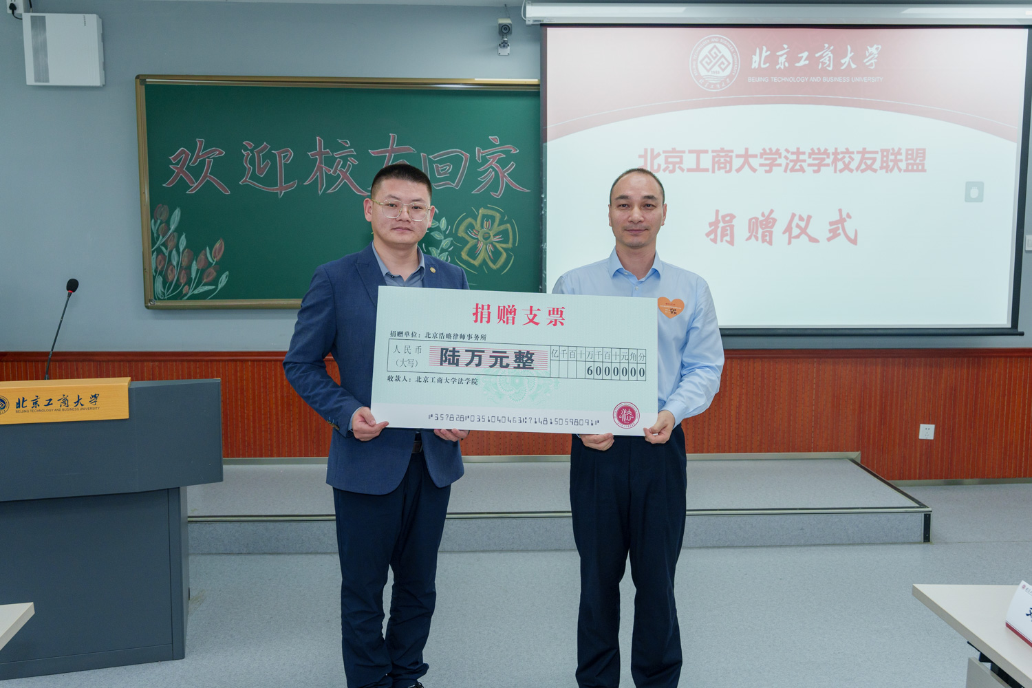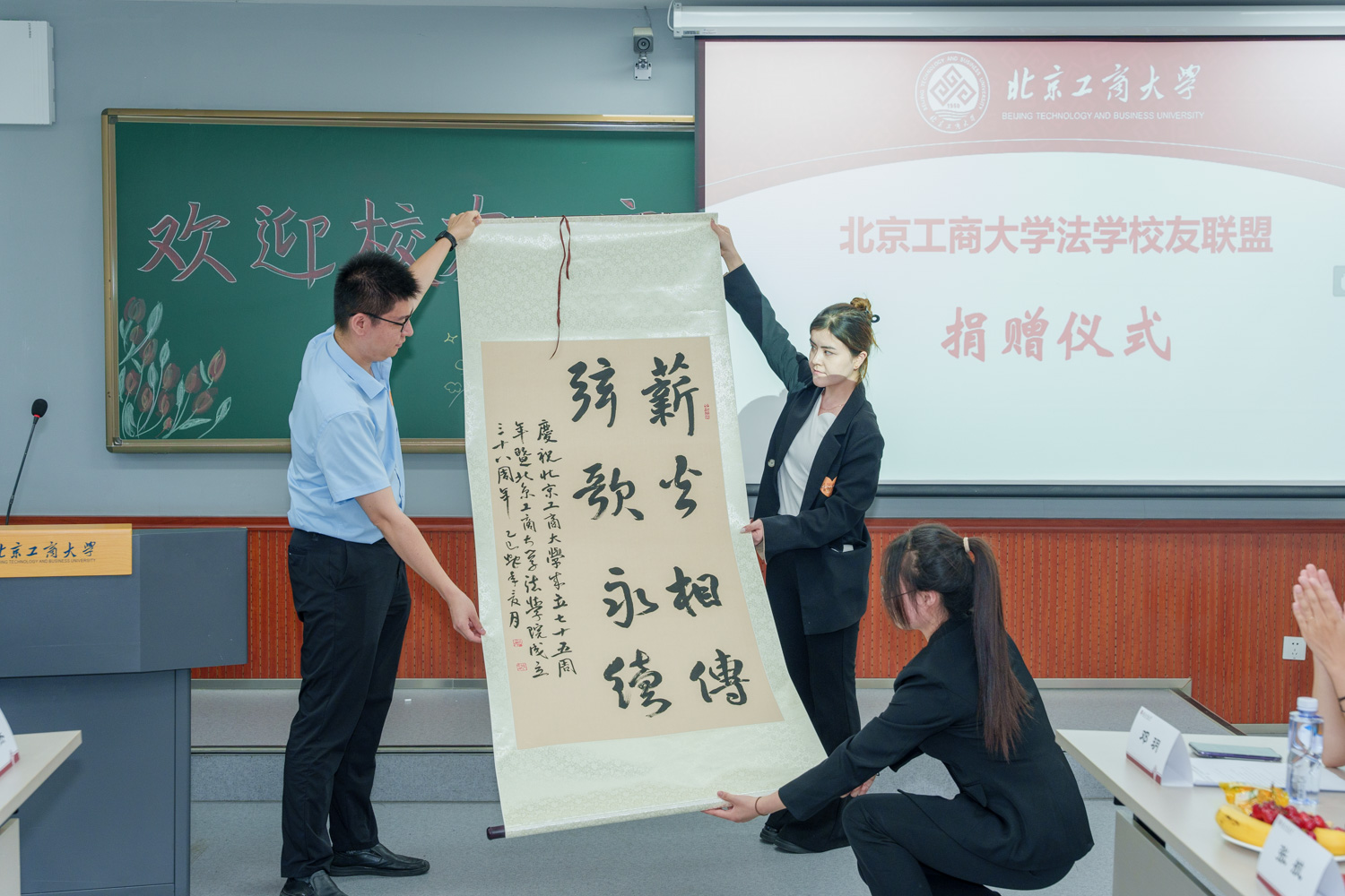 会上,北京浩略律师事务所创始人、执行主任孙统彪向英国威廉集团官网捐赠法学教育基金,助力法学教育事业的薪火相传。副会长张法水为母校献上了一幅精心创作的书法作品。参会师生深情回顾求学岁月和师生情谊,大家畅叙情谊、共谋发展,现场气氛热烈而温馨。