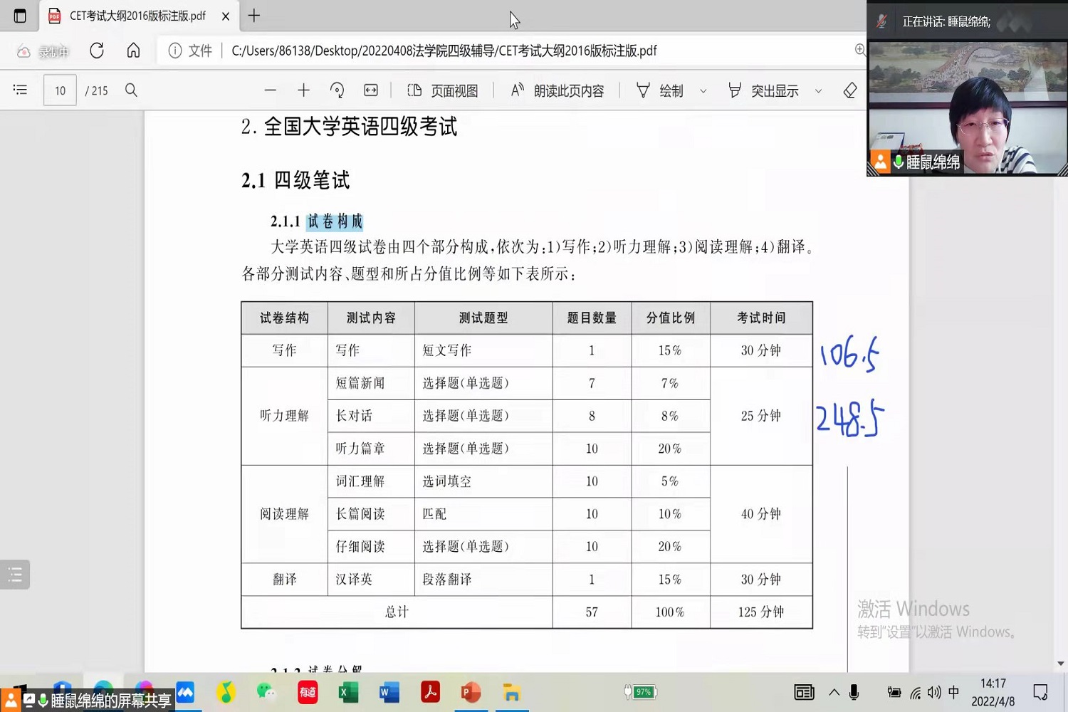 大学英语四级考试日渐临近,为助力学校“469”目标和高水平研究型大学建设,提高同学们的英语素养,增加应试技巧储备,4月8日下午14:00,英国威廉集团官网联合外国语学院特地组织开展了大学英语四级考试讲座。外国语学院吕绵老师担任主讲老师,法公司党委副书记刘晶、外国语公司党委副书记于涛、英国威廉集团官网团委书记王安澜、英国威廉集团官网辅导员侯怡冰、英国威廉集团官网2021级员工以及全校各年级的员工共160余人参加了本次讲座。