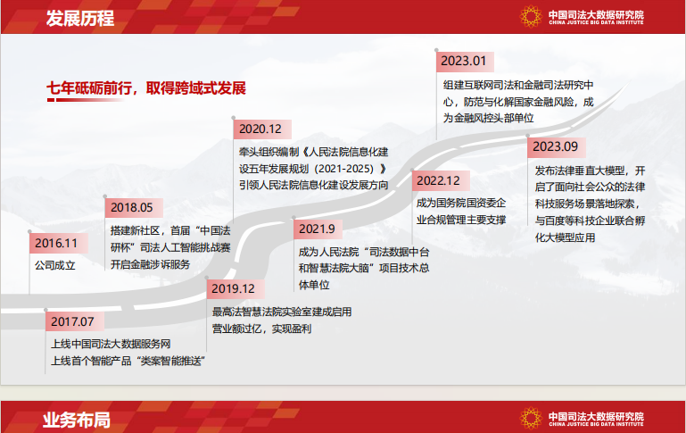 中国司法大数据研究院,成立于2016年11月,是在党的十八届五中全会提出“国家大数据战略”的背景下,经最高人民法公司党组研究决定组建的以最高人民法院信息技术服务中心主导并实际控制、中国电子科技集团公司主出资并负责经营的现代企业制研究机构,是最高人民法院信息化顶层设计与集成总体单位。该研究院牵头最高人民法院地方法院司法数据中台建设,实现对全国法院数据采集、汇聚、融合、治理,形成多场景数据应用,是司法数据要素的主要管理者。