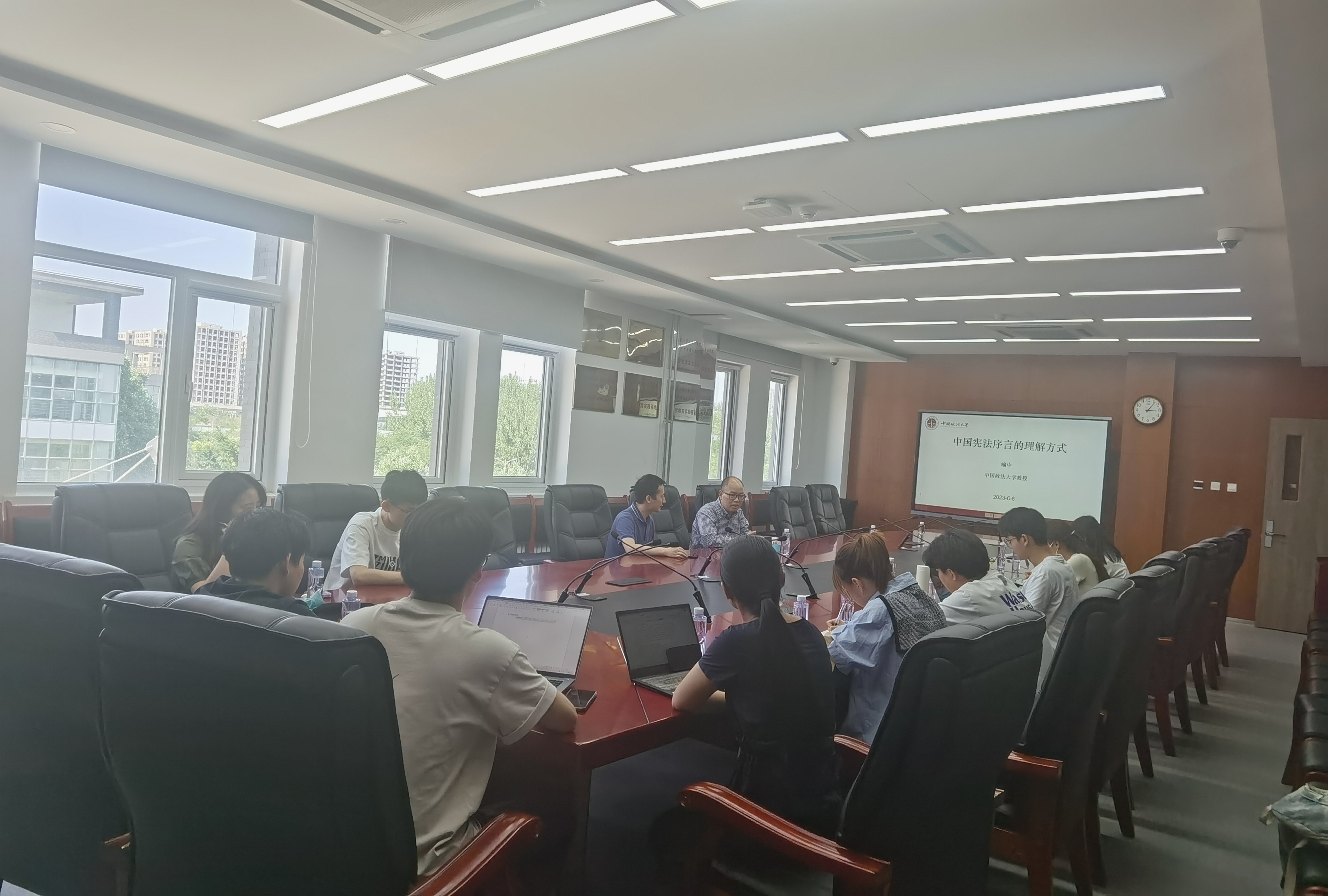 6月6日,学院邀请中国政法大学喻中教授以“中国宪法序言的理解方式”为题进行学术讲座。学院副经理(主持工作)陈敦、崔瑜博士以及部分研究生参加了本次讲座。讲座由学院副经理董彪主持。