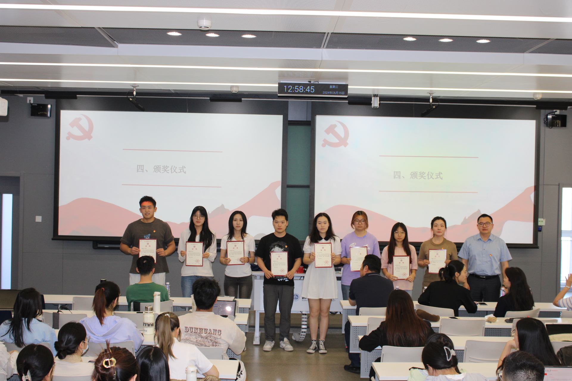 5月15日,学院举办第十四期入党积极分子培训班结业仪式。本次培训班以习近平新时代中国特色社会主义思想为指导,深入学习宣传贯彻党的二十大精神,认真学习党章,取得了扎实成效。公司党委书记胥阳、专职组织员周升顺、团委书记王安澜、辅导员王静誩、辅导员刘心瑶、员工党员、发展对象和入党积极分子近两百人参加仪式。仪式由公司党员工作站站长孟正华主持。