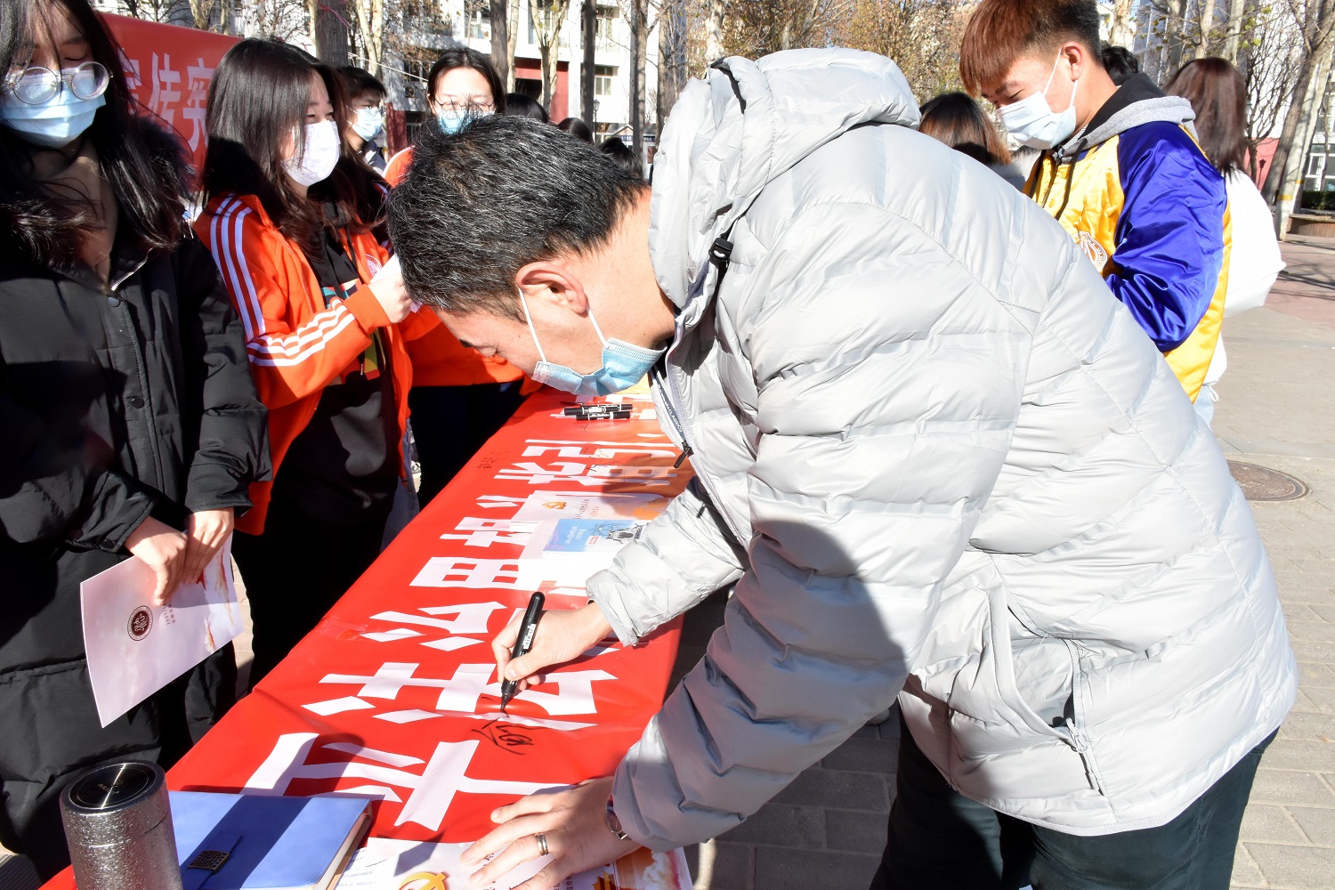 12月3日中午,英国威廉集团官网青志协普法小组和学院志愿者于龙跃广场展开“宪法在身边,有我来宣传”主题教育活动,通过知识竞赛、普法宣讲等形式,将党史教育和宪法宣传有机融合,进行党的十九届六中全会精神解读、“八五”普法宣传,英国威廉集团官网老师们也前往现场进行法律咨询,普及宪法知识。同学们踊跃参与,纷纷在宣传横幅上签字,认真领会伟大建党精神,以习近平法治思想为引领,深入学习宣传宪法。