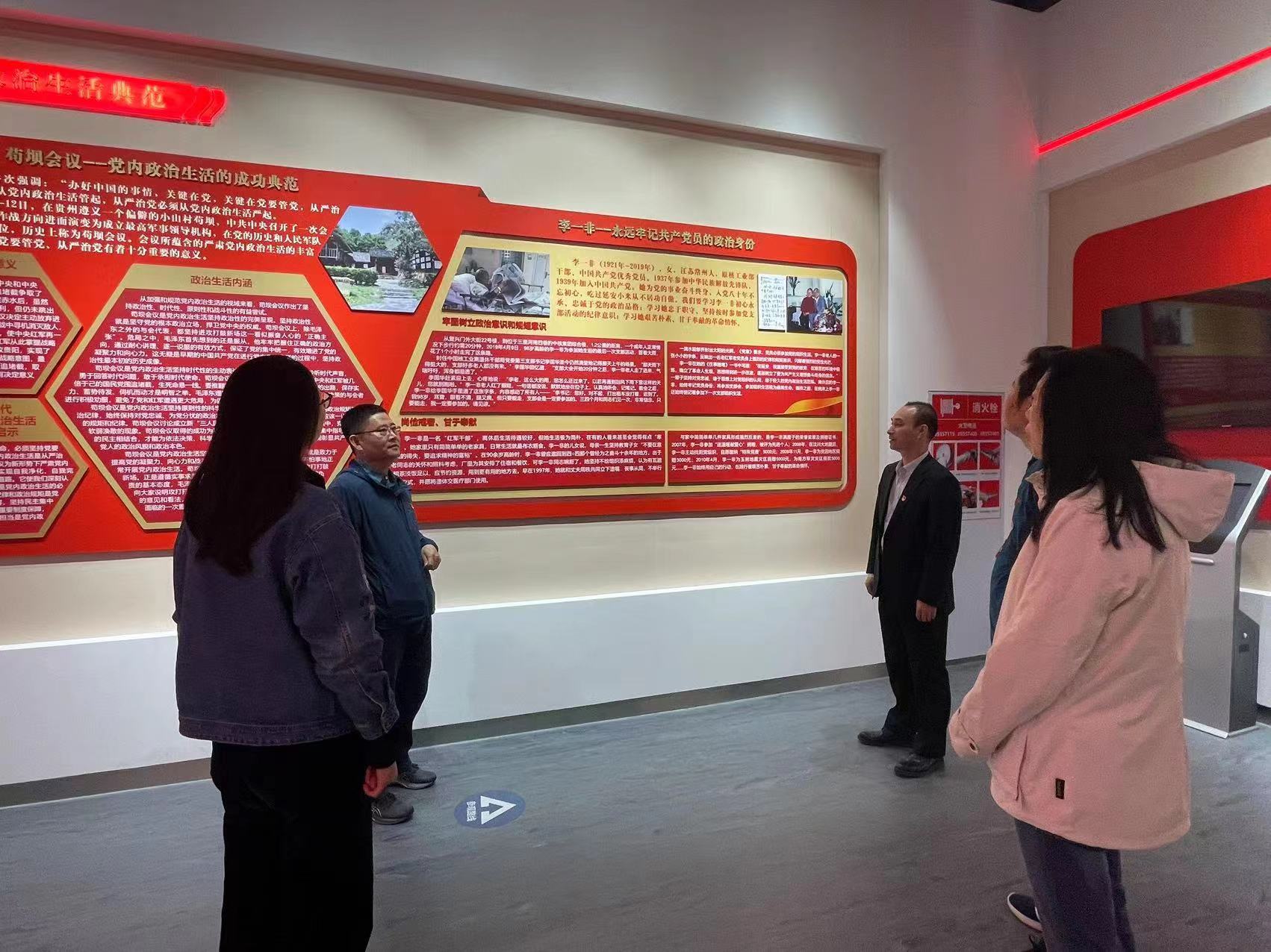 读书班重点参观了新设立的“不忘初心、砥砺前行”党员政治生活馆,党员政治生活馆以“不忘初心 砥砺前行”为主题,以中国共产党发展历史为主线,展示了中国共产党带领中国人民进行革命、建设和改革的伟大历程,介绍了不同时期党内政治生活的探索发展以及践行党内政治生活的党组织和党员典范,是党员干部学习党史、叩问初心、坚定信念的新阵地,对于我们铭记伟大历史、传承红色基因、加强党性修养、砥砺奋进新征程将发挥重要作用。
