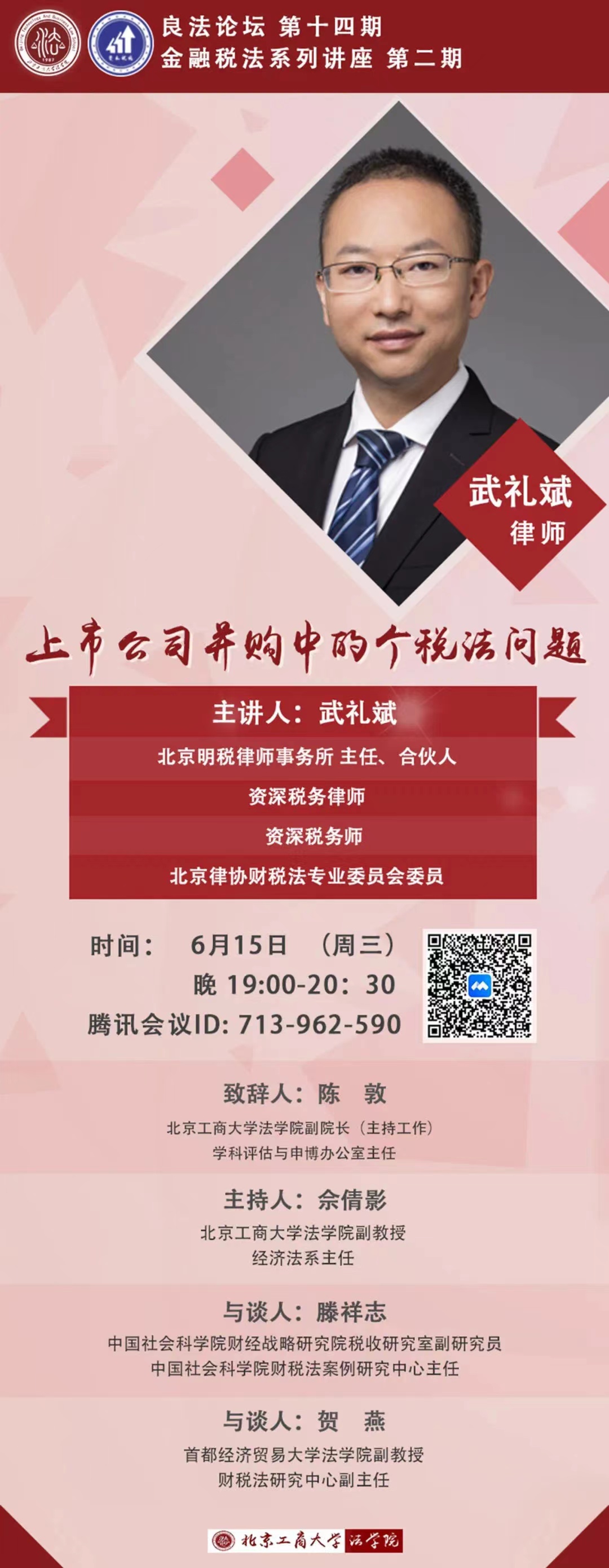 【讲座预告】良法论坛第十四期·金融税法系列讲座第二期——上市公司并购中的个税法问题