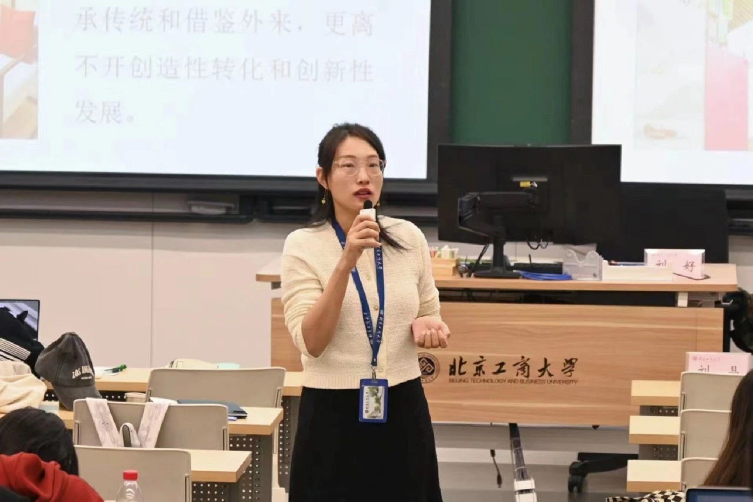 刘好用《逃出大英博物馆》引入主题,围绕“为什么要加强中国特色社会主义文化建设、新时代中国特色社会主义文化理论、怎么建设中国特色社会主义文化强国”三个方面向同学们阐释了文化强国建设的战略意义。她告诉同学们,物质富足、精神富有是社会主义现代化的根本要求,要将文化力量融入经济力量、政治力量、社会力量,传承中华文明,促进物的全面丰富和人的全面发展。